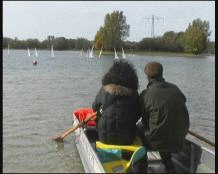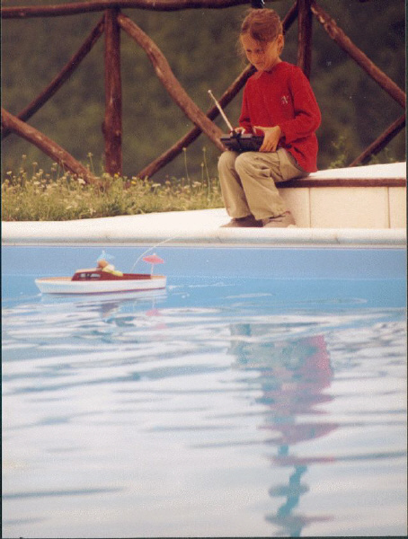Love can sail! Here my daughter with her "Wee Nip", winning the race against father´s A-class yacht "Alien". Impression from the lake Garda (Italy) in summer 2003.
